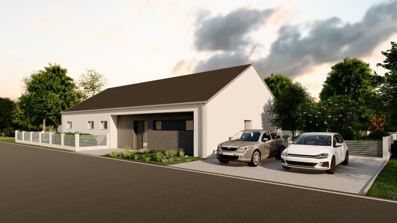 Moderní rodinný dům se dvěma koupelnami.